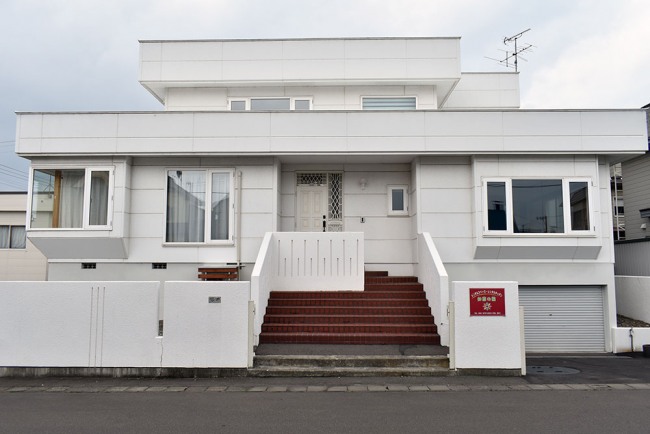 閑静な住宅街にたたずむ白い大きなおうちが目印