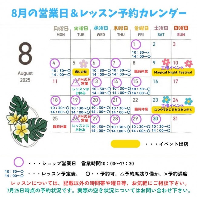 2026年1月の営業日&ハンドメイドレッスン予約表